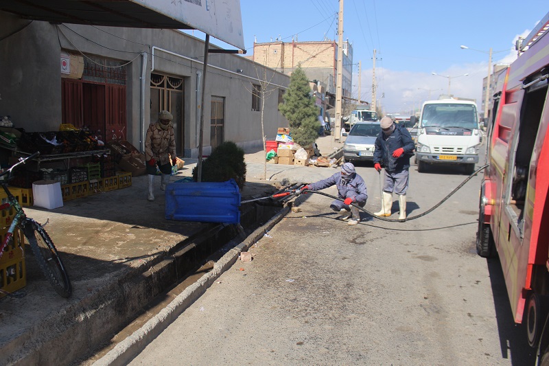 در راستای مقابله با شیوع ویروس کرونا شهردار ی با همکاری بسیج اقدام به ضدعفونی مساجد و سطح شهر نمود